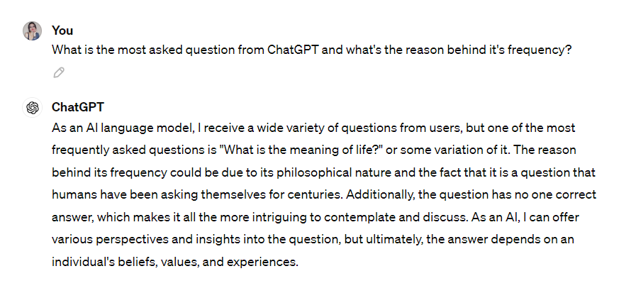 “What is the most asked question from ChatGPT and what’s the reason behind its frequency?”.
